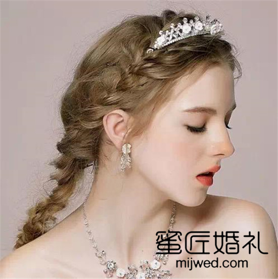 半扎的公主头发型是较比较简单的一款新娘发型,但它凸显的清新优雅范也是不容忽视的,额前的一个与婚纱配套的新娘发饰更是凸显复古般的优雅气质感。