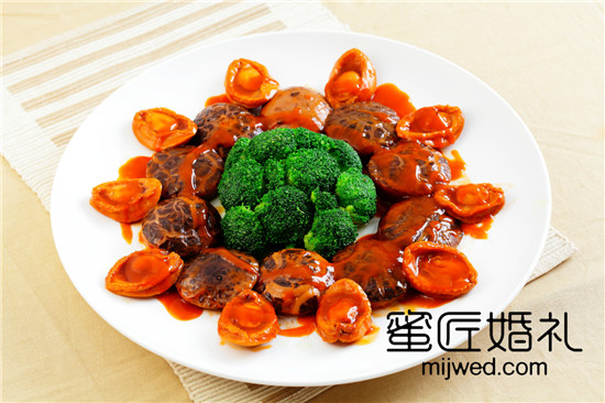 4.在选择婚宴菜的时候一定至少要有一至二道撑门面的菜,而且一定要高级,用来拉高整桌酒席的档次。而且这两道菜要选择美观器皿的搭配。