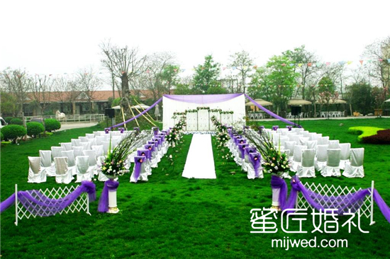 礼仪式并不是作秀,而是真正让新人体会在爱情的美好。草坪婚礼是本身就是一种计较浪漫的婚礼形式,大自然的怀抱中,翠绿的草坪像一块软绵绵的无边地毯,衬托着热闹的婚礼现场,用鲜花和绿叶做成的拱门圈出了主会场的地域,整整齐齐的大长桌上铺满了鲜花和美餐。在灿烂的阳光下,让蓝天为80后90后婚礼作证,在如茵的草坪上接受亲友们的真诚祝福,你们可以牵着手,走过翠绿的草地上,让微风扬起了她散落下的绺绺发丝,在摄影师的面前留下你较自然的时刻。这一幕幕都是那么美好!