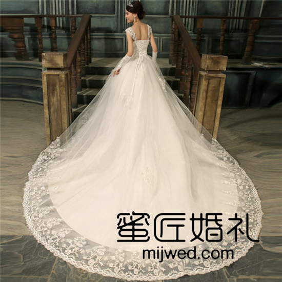 即便再不知道公主型婚纱有哪些那肯定也听说过蕾丝公主裙,圆领削肩的正面设计看似是优雅的保守派,而背面却是交叉肩带的大胆露背造型,这让新娘纤细腰节自然而然地成了关注重点。但是蕾丝公主裙对新娘身材的要求比较高,所以新娘在选择时候一定要先想好。