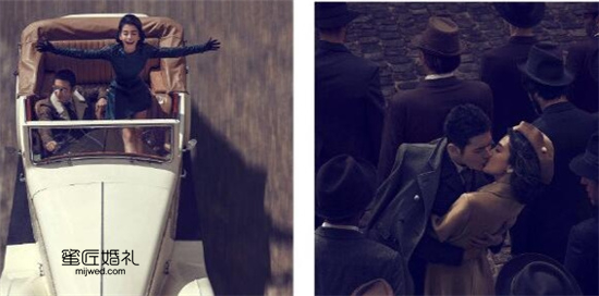 除了致敬史密斯夫妇,美国往事里面的经典场面也被融入黄晓明杨颖婚纱照里面。两人穿着复古美式风格衣服在人群里面接吻,在轿车上兜风。演绎自己爱情元素的电影。每张照片真的是堪比本身的电影海报。陈漫的实力和构思难怪收到黄晓明婚纱照钦点。