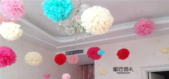 创意婚房布置效果图里面,较近很流行用纸花来装饰。吊起来的纸花球非常唯美,就像漂浮在空气中一样。很多婚礼布置也可以采用这个,而且物美价廉。价格也是非常实惠。不知道以上创意婚房布置效果图您较喜欢哪个呢?欢迎您蜜匠婚礼app里面分享您的装饰心得哦。