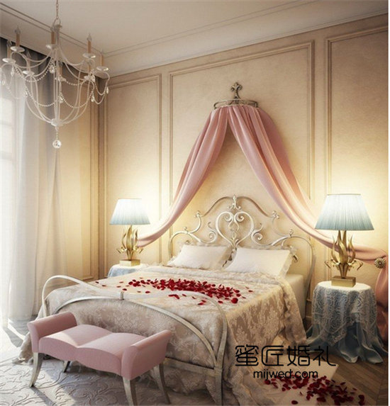 婚房布置新人们一般在婚礼举行一周前就可以着手准备了。但是装扮婚房除了材料要买齐,就是想好布置什么样的风格。蜜匠婚礼小编手里有一些创意婚房布置效果图,也许可以帮助到您如何布置婚房哦。