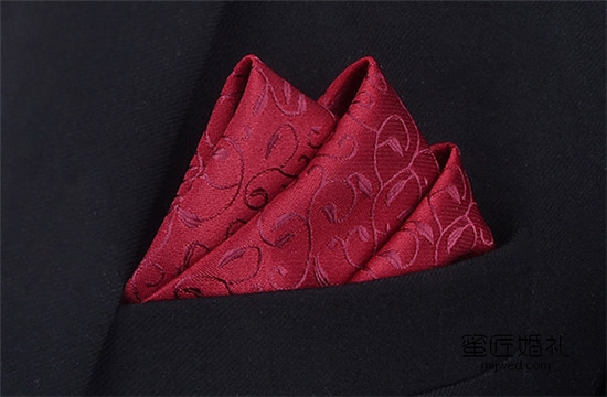 英伦水草花方巾,红色可以说是中国人较喜欢的颜色。这种带着酒红色的新郎西服口袋巾款式,除了沉稳有内涵因为红色自带一丝喜气感觉。如果在婚宴酒店举行婚礼,相信这种口袋巾是大部分新人们喜好。