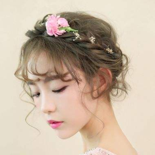圆脸新娘适合的发型有哪些?圆脸的女孩给人的感觉一般都是比较甜美可爱,这是圆脸女孩很大的优势,所以一个成功的新娘发型,首先要将这点优势凸显出来。建议把长发整个向后梳,但不需盘起,而是编成蓬松的麻花状,头顶再加一个小珠冠,可爱而不失灵气。