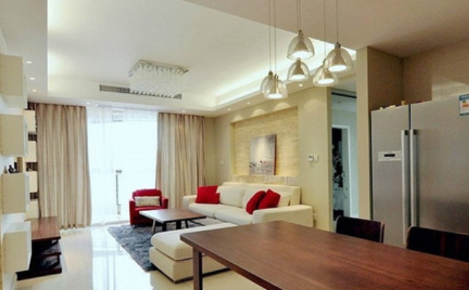 床是卧室的活动中心,所以应当摆放在房间的中部,并且通向床的道路应尽量通畅,使其成为较方便接近的地方。如此放置使人感觉房间被床分成了两部分,因而看起来更大一些。两个床头柜分置于床的两边。衣柜则放置在床的对面,这样既对称,又能非常方便地看电视。