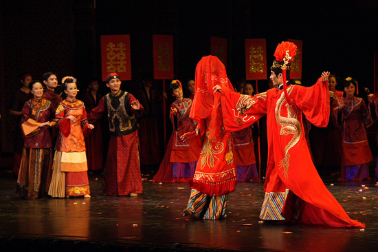 12、新郎到女家接新娘时,新娘可能离开娘家或在过度兴奋下喜极而泣,这也甚为普遍而不成问题(甚至是好事,留下“水头”旺女家)。但过门至男家后就不能流泪。