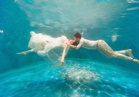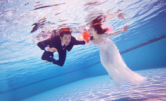 拍摄婚纱照成了结婚必备的事情之一,而拍摄水下结婚照成了年轻人的一个新潮流。那么很多人会问如果我不会游泳能不能拍了,拍摄这种水下婚纱照是不是真的要在海里面拍?在拍摄水下结婚照的时候有没有专人在旁边看护?拍摄这种水下结婚照注意事项有吗?