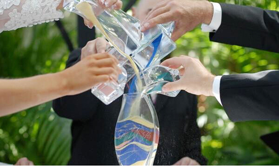 新郎和新娘各拿一瓶沙,混到一起,象征着两个生命交融,永不分离。