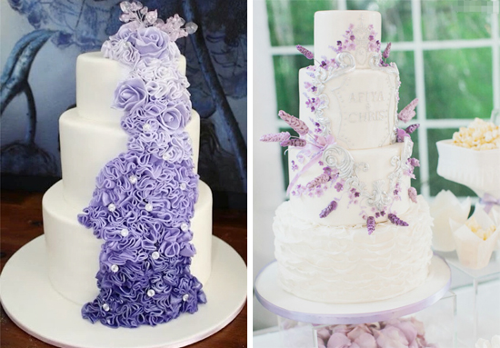 紫色代表的浪漫,那么把紫色融入到婚礼蛋糕更是别有一番甜蜜感,那么在颜色上面还是要与整个婚礼主题能相衬,毕竟如果紫色过深的话,放在整个浅色婚礼主题上面就会过于突出。