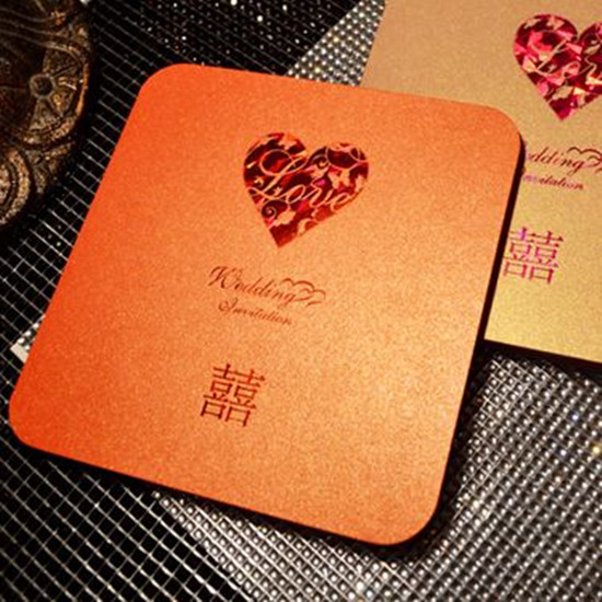 3.传统,复古婚礼的个性请帖:如果你选择传统的中式元素较多的婚礼形式,经典的红色系请帖则是你的不二选择。注意在请帖上也加入一些中式元素。比如国画图案等,让你的喜帖更出彩。如果你想用古体比如篆体印刻请柬,那也许多花些钱,但注意如果字母表不同,那未必能找到一家愿意为你印刷的印刷商。