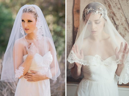 这种西班牙风格的新娘头纱悬挂在头部,经常由蕾丝制成。这种新娘头纱的长度可以变化而且也不需要用头皮来使它固定,这种新娘头纱能够增加你的种族的特征。
