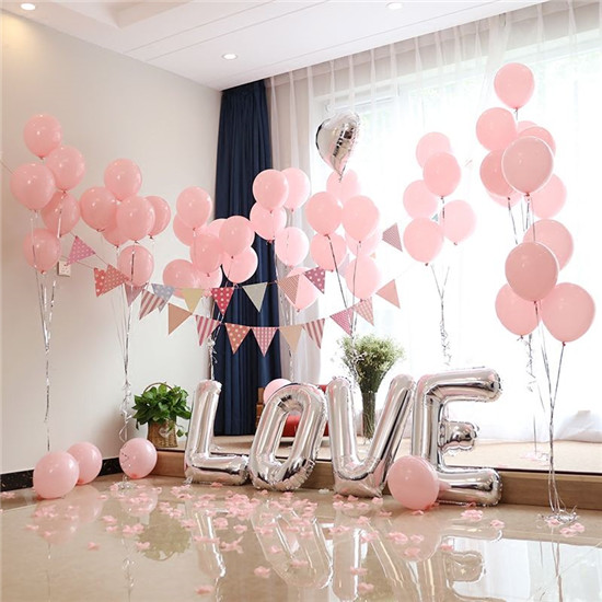4.如果是小户型的房子的话,记得不要布置得太夸张,不然会有很强的累赘感,可以采用多色的气球来装饰,既有浪漫的气氛也有足够的喜庆感。