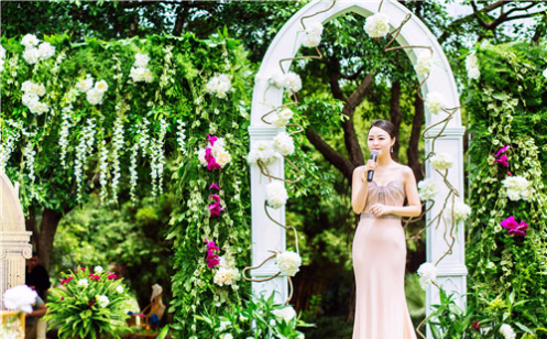 一个好的婚礼司仪像婚宴里精彩的沙拉,浓淡合宜。司仪要有非常好的亲和力,他是全场的焦点,他可以调动全场气氛。