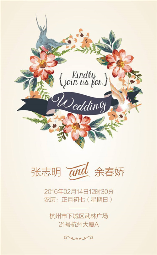4.应写明举行婚礼的具体日期、星期和时间,年份可以不必出现。