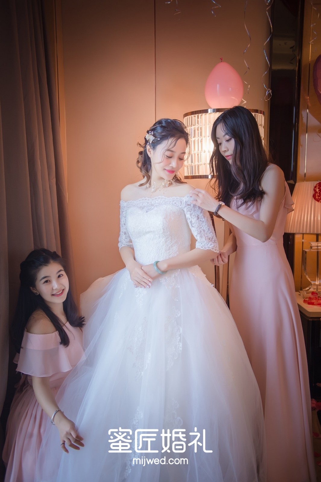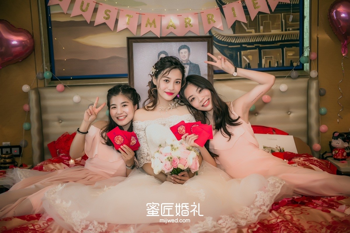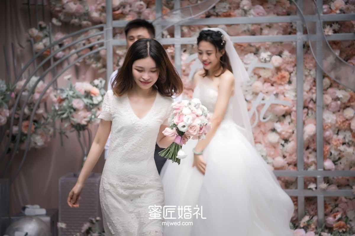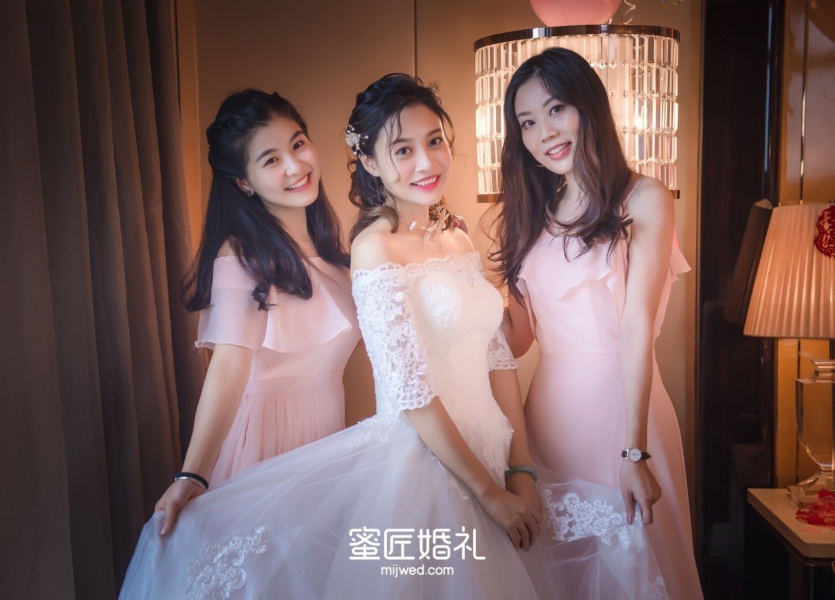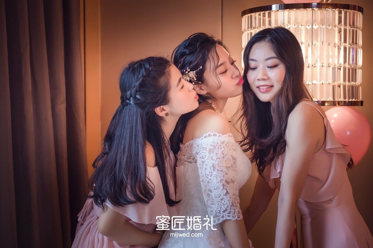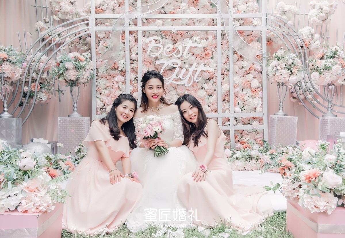 伴娘礼服是我闺蜜自己在网上选好,我给她们买的。我的婚礼是裸粉色系,伴娘服也都挑的颜色相近的淡粉色,款式多样,根据伴娘们身材来选,这样拍照也更上镜清新。
