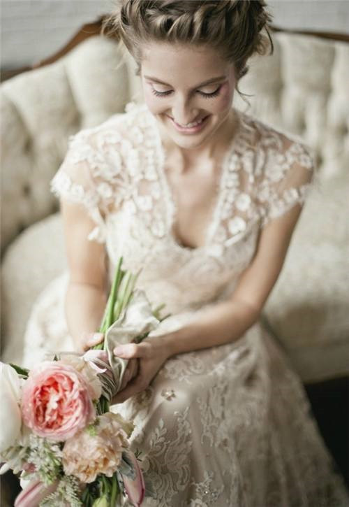 V领婚纱比较性感,对于胸部平坦的新娘如果选择了V领婚纱,一样可以穿出性感风来,只要搭配好了内衣,同样能穿出自信,穿出美感。V字内衣正是深V字领礼服的绝配,深V领的婚纱下展露出半透明的蕾丝花边,是较好的搭配了,想必以后穿着这种衣服的机会也少,所以婚礼那天, 穿很好看就买什么哦,一定要让自己美美的。