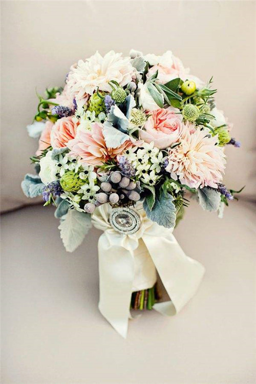 胸针、宝石、珍珠和水晶,你以为我在讨论一件高级珠宝首饰吗?不,当我们把这些元素全都糅合到一起的时候,创造了较独一无二的新娘手捧花。美轮美奂的可爱新娘手捧花,这一定和你想到的大不相同。