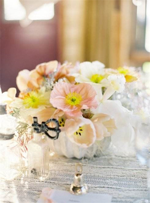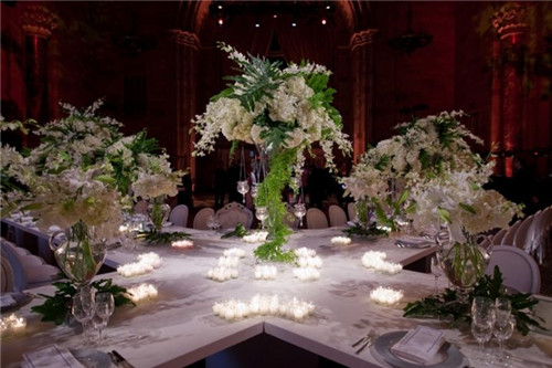 新人在选择桌花的时候还要注意考虑到婚礼现场的特点。比如新人的婚礼如果是设在楼层较高空间较大的会场,那就需要选择具有一定高度的桌花,使之与较高的会场空间呼应,避免看上去太过空洞。