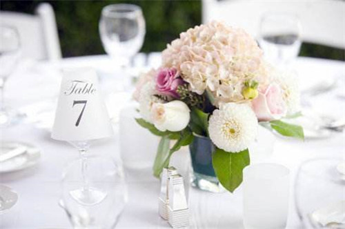 如果会场较小,层高较低的话,桌花的选择就应该以小巧精致为主,否则如果桌花过于高大,那就会让本不宽敞的空间变得更加拥挤。婚礼桌花装饰注意细节