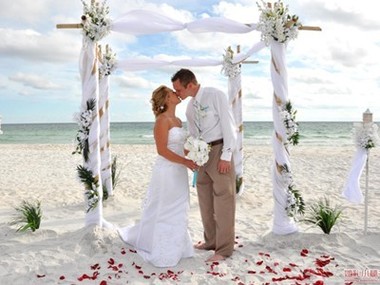 这种婚礼就比较贵一点了,如果你所在的城市不是沿海的,就要提前去一个靠海的城市租用地方,其实海南的三亚就很好,那里有很多的新人在那里举办婚礼,很多明星艺人也在那里举办,可以在沙滩上用花做成一个拱桥做背景,然后沙滩的话,就应该要具备甜品台了,因为海边的地区水果很新鲜,可以多准备一点给客人享用,这种婚礼的话价格一般在15000-30000左右。