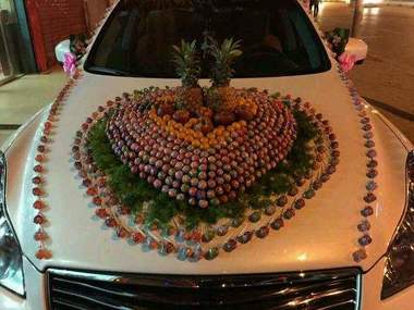像棒棒糖这么浪漫的东西,出现在新娘子的面前,你觉得她会不会感受到你甜蜜的爱呢,那是当然了,这么有创意的婚车装扮,很吸引人的。