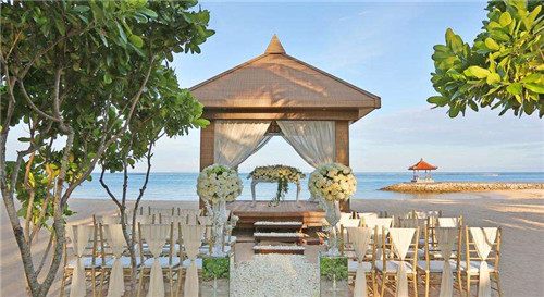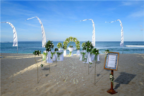 如果条件允许,不妨选择热带或者亚热带的海滩,那里风光宜人,而且气候更为温润,昼夜温差不大,可以全天狂欢。还要考虑到是否有平坦的沙滩,并且是比较私密的地方(酒店的私家沙滩是一个不错的选择)。既能给予宾客周到的照顾,又能使你的婚礼不至于那么嘈杂。