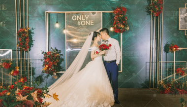 酒红色捧花象征着新娘的热情妩媚,新人们之间爱情的浓厚热烈。