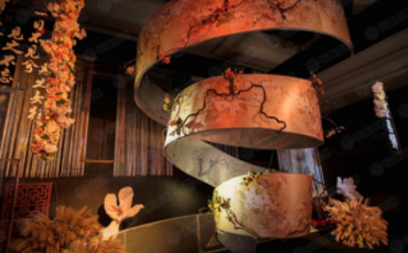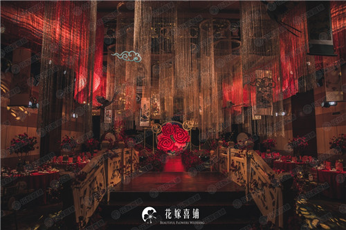 舞台背景,舞台是婚礼现场较为集中的地方,在舞台上将要进行非常隆重而神圣的交接仪式,因此舞台背景的布置显得尤为重要。而豪华婚礼的背景布置既不能过于单调,又不能布置地过于花哨,抢了新人的风头,布置舞台背景需要一个纱幔,在纱幔上可以加上一些新人自己的logo,还可以适当地用鲜花点缀舞台。