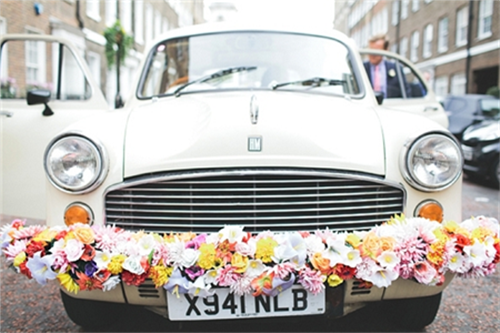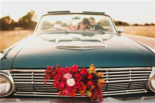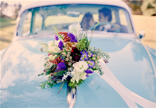 婚车主要用来迎接新娘,一定要打扮的漂亮,富有个性。婚车上的鲜花一定要浪漫时尚,具备几个特点,即色艳、新鲜、花大、寓意好。车上的鲜花装饰必不可少,可以选择不同花卉交杂在一起,也可以用单心或蝴蝶结图案装饰。