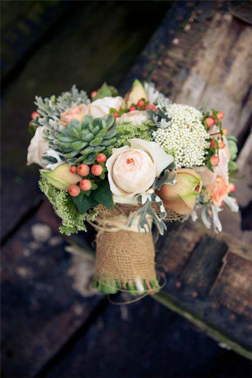 3.玉蝶新娘捧花手捧花的风格可以有很多种,有森系的,撞色的,纯白的,粉嫩的,热烈的……像这样粉嫩中带着小清新的多肉捧花想来也不会有新娘会拒绝它的魅力吧,它也能成为传递幸福的见证。下一位拿着手捧花的你,准备好接受幸福吧。