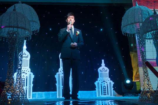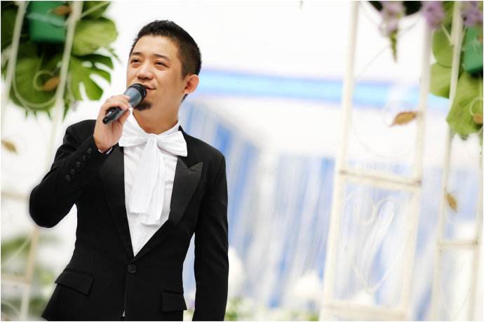 在这里我有一个小小的要求,在新郎新娘走进婚礼现场时,我希望在座的每一位朋友都能用你们热烈和掌声和喝彩声迎接新人的到来,大家说好不好?大家的回到还不够热烈,我再问一遍,大家说好不好?大家大声回到“好”!
