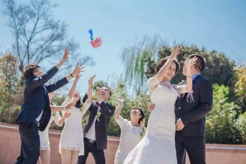 手捧花是爱和幸福的传递,今天新娘要把象征爱和幸福的手捧花送给一直陪伴在她身边的朋友,今天下幸运儿是谁呢?就是今天婚礼从开始到现在一直陪着新人的伴郎个和伴娘,让我们祝福更多的有情人终成眷属,有请伴郎伴娘接过新娘的祝福!
