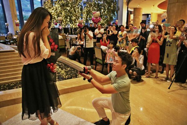 2、当你开心的时候,我也会不知不觉笑出来;当你难过的时候,我的心比你更痛苦。我很喜欢你笑的样子,真希望自己能够永远珍藏你的笑容。请你嫁给我吧,我一定会让你永远幸福快乐!