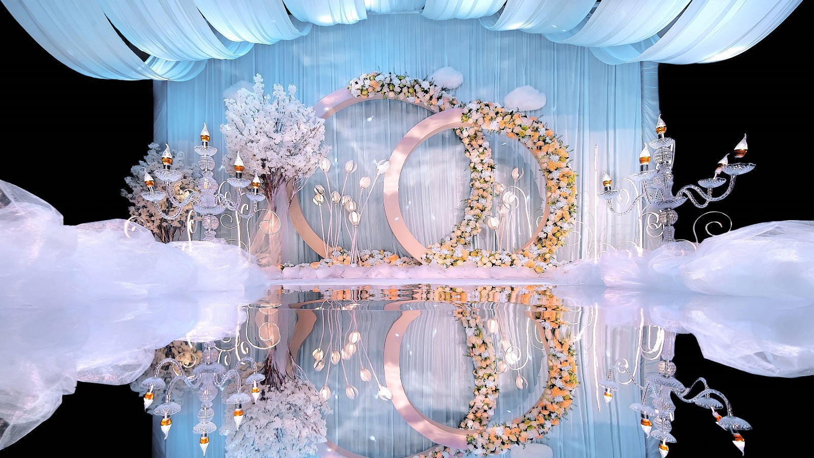 婚礼现场的布置是根据整场婚礼主题进行婚礼整体的预算,通过计算可以推算出布置一场婚礼所需要的费用金额。婚礼根据实际策划效果提供、特色装饰及设计,由婚庆公司根据实际策划效果提供。