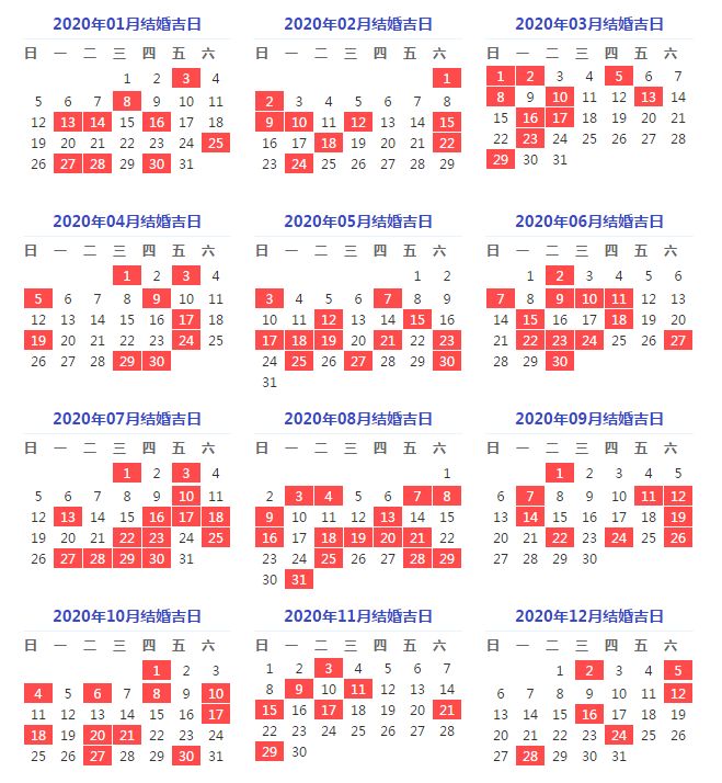 一、2020年结婚较好的日子
