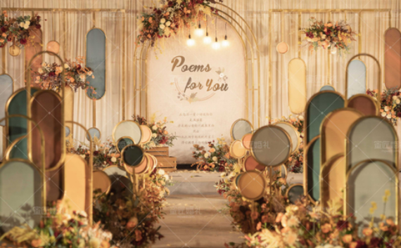 请各位来宾各位朋友用热烈的掌声,迎接一对新人闪亮入场。