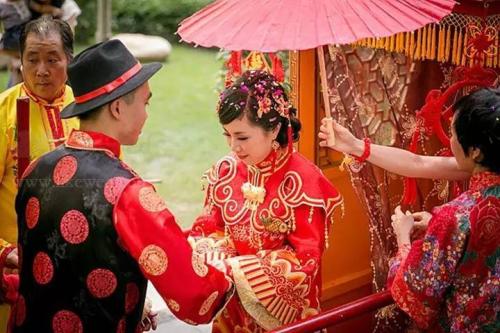 讨喜:新郎与女方家人见面后,应持捧花给房中待嫁这新娘,此时,新娘之女友要故意拦住新郎,可是条件要新郎答应,通常都以红包礼成交。