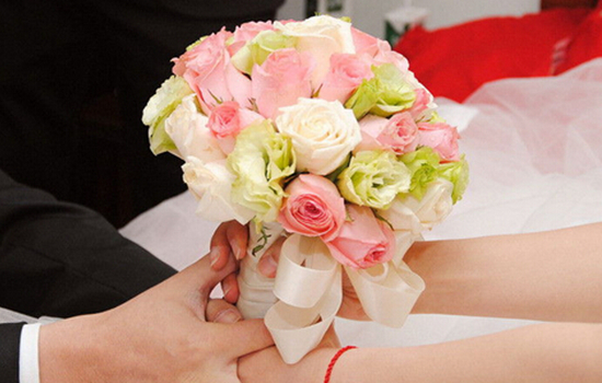 新娘捧花的选择还要注意其喜庆吉祥的寓意,切勿因某偏爱某种花而忽视了它的寓意。如选五爪龙(结伴)、长春藤(结婚)、麦藻(结合在一起)而组成的花束,它的寓意是:恩爱结姻缘,相敬共一生。