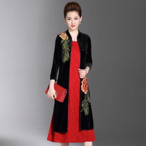 这款中国红色的中国风宽松中长款连衣裙,不管什么身材的中年妈妈都适合穿。宽松的版型显瘦又遮肉,独特的中国风图案更显雍容华贵,非常符合中年女性的优雅与大方。在婚礼这种重要场合,还是要注重一下自己的衣着哦~