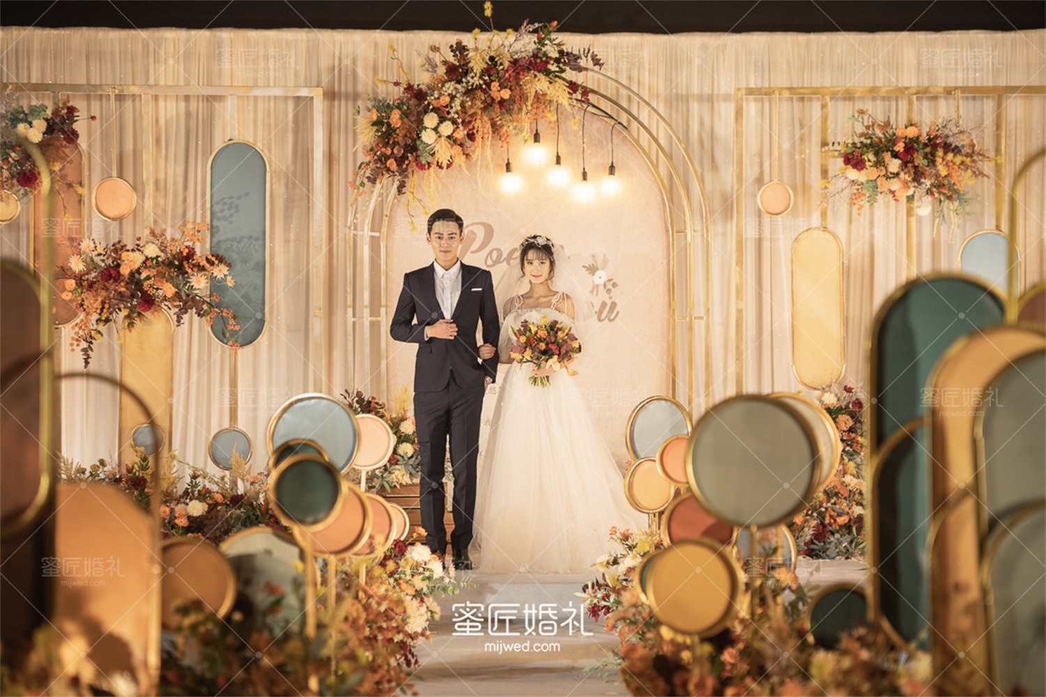 10、梧桐枝上栖双凤,菡萏花间立并鸳。相亲相爱幸福永,同德同心幸福长。海枯石烂结同心,地阔天高比翼飞,花烛笑迎千喜鹤,洞房喜开并头梅。新婚快乐!