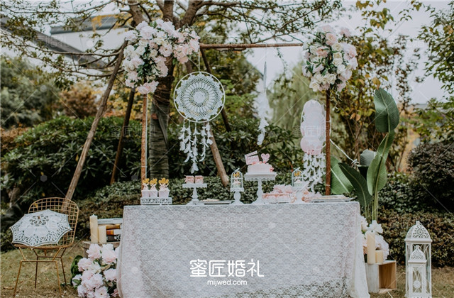 迎宾拱门(粉白气球)、礼花、烟花、礼炮(建议用冷烟花)迎宾、伴奏等配乐、签到台以及客席单布置粉色元素绸布或纱缦、 婚宴舞台背景放映两人甜蜜照片以及恋爱回忆、婚礼蛋糕以及水晶杯水晶烛台、专业灯光师进行婚礼追光灯布置