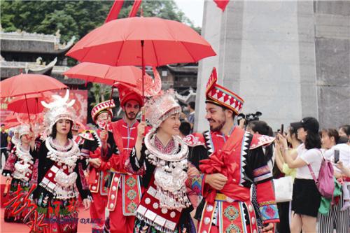 7、到新娘家后,双方亲友要坐在大厅,新郎父亲要用苗语请女方家长安心,婚后会照顾好他们的女儿,小夫妻一定能过上好日子。