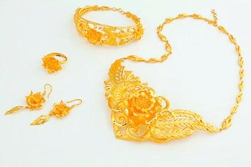 传统结婚“三金”是指项链、耳环、戒指,或者手镯、耳环、项链。在中国,嫁姑娘收聘礼天经地义,聘礼的贵重在一定程度上代表着男方的实力与诚心,也关系着女方的面子与荣耀,结婚三金是聘礼中的重头戏,男方家用它来展现家底和诚意,女方家则由此来炫耀幸福和甜蜜。