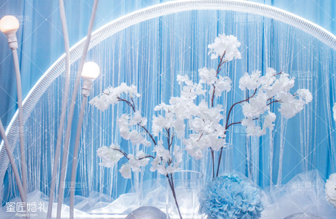 如果是在水面上搭建的舞台,那么对于舞台材质的选择就很重要,一般以透明材质为主,但一定要考虑到承重性,然后在舞台上用花瓣、气球等婚品进行装饰即可。