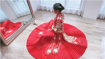 新娘装的话,如果是中式的婚礼就穿红色秀禾服或者旗袍,但是如果是西式婚礼的话,就应该穿婚纱啦。