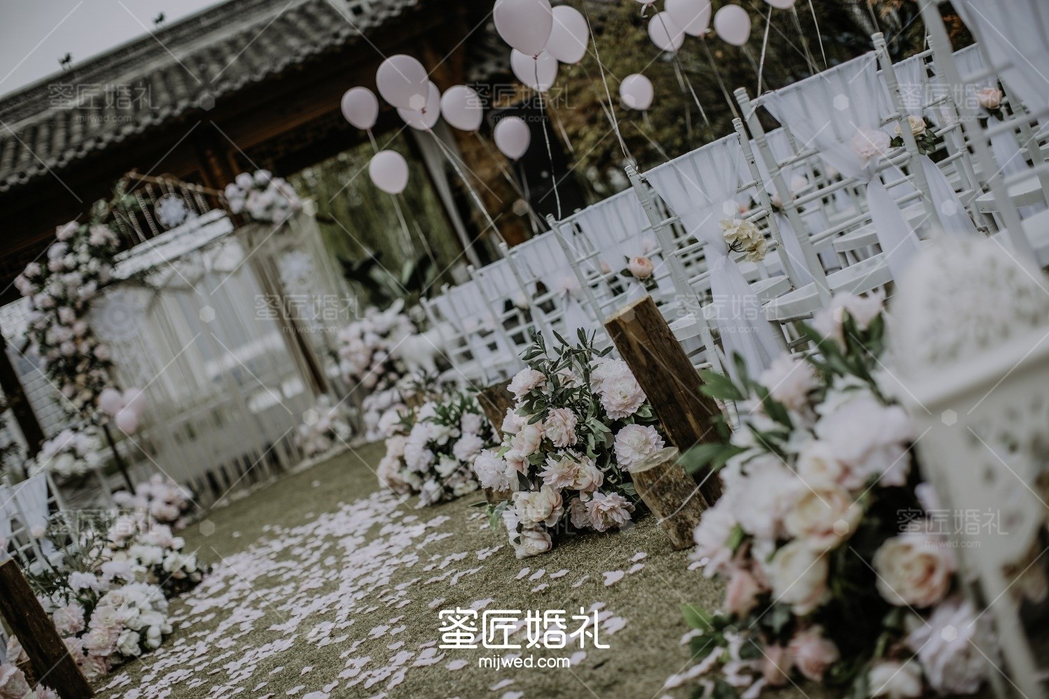 森系的婚礼以白绿为主色,搭配一些粉色。新人们可以根据实际邀请的宾客数量确定场地的大小。还需要新人找人设计和准备的有:签到台、拍照主板、每个餐桌布置、指引牌、手捧花、双方父母 胸花、狗狗花环、桌签,还租了60把竹节椅。对于伴手礼来说可以给每个人准备一个牛皮手拎包,花都可以带走,算是分享新人们的幸福。