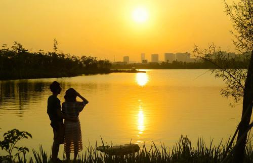 18、一会儿,太阳又变了。她又换上了一件红彤彤的衣裳。远远望去,像个大火球似的。这时,她满意了。她要穿上这美丽的衣裳,去出席今晚的晚宴;她要给她的孩子一个惊喜。你看,她那圆圆的笑脸,笑得有多开心!