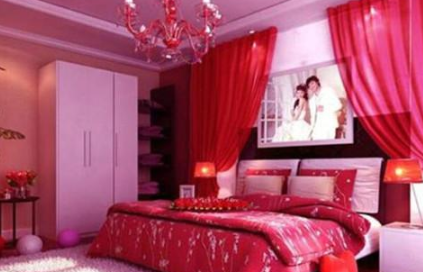 婚庆装饰品包括气球、彩带、拉花、LED彩灯、喜字等,喜字贴在婚房门上和窗户上,气球可以悬浮在天花板上,拉花可以从天花板上悬挂下来。但是小婚房空间有限,尽量不要弄得太夸张,否则会看上去眼花缭乱。