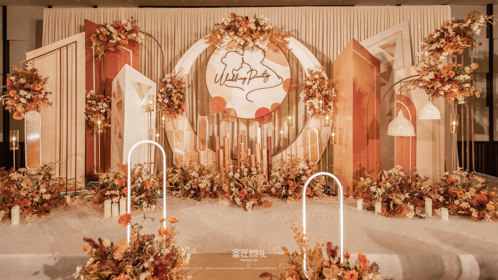 以深豆沙色与浆果红的温柔撞色中再以金属质地配色点缀其中,张弛之中打造一个柔和且独立的婚礼空间。别致质感而又不失浪漫温情,拉开了如电影唯美诗意的篇章,彰显独特的高级感。